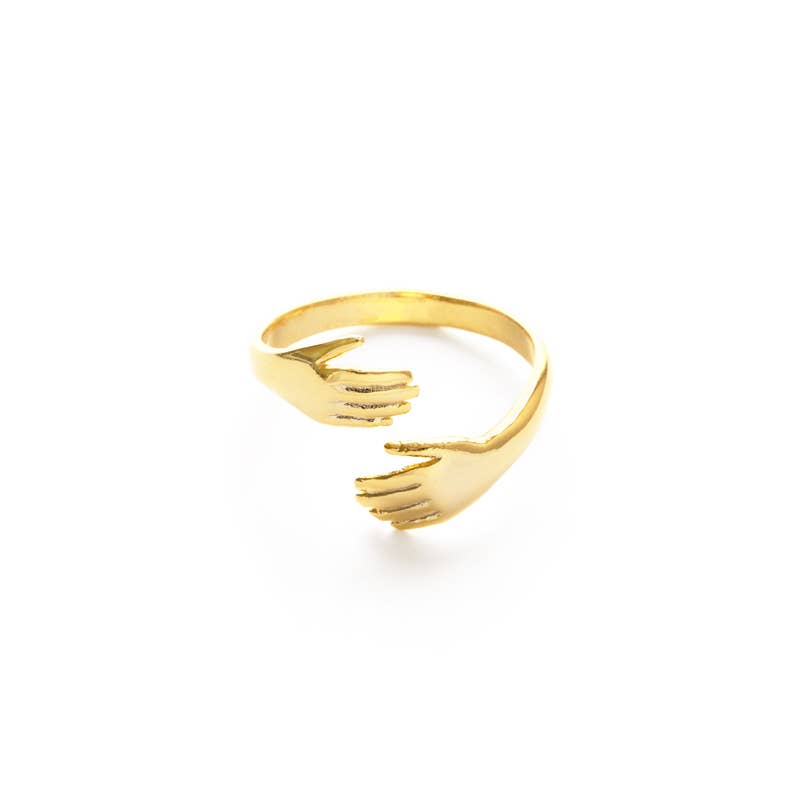 Embrace ring is made of gold plated brass and is adjustable to fit sizes 6-8